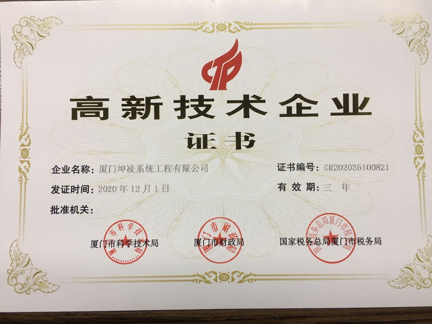 高新技術(shù)企業(yè)證書